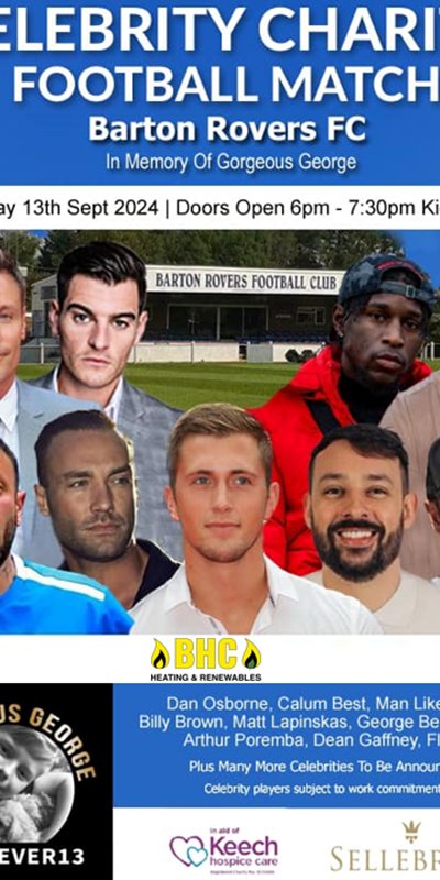 We also support local charities through social events. Just the other weekend we were donating money to help refurbish the Meadow Suite at Keech Hospice by being the main t-shirt sponsor in the Celebrity Charity Football Match in Memory of Gorgeous George Fox.